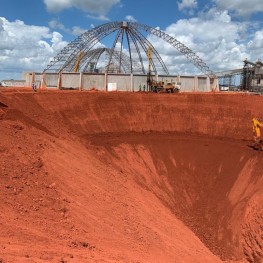 Execução da terraplenagem de três armazéns graneleiros fundo "melita" no terminal intermodal ferroviário da Rumo em Rondonopolis. Este serviço é muito diferenciado devido a complexidade do formato dos armazéns principalmente quanto aos diversos graus de rampa que devem ser respeitados para o escoamento do grão, alto nível de dificuldade executivo.