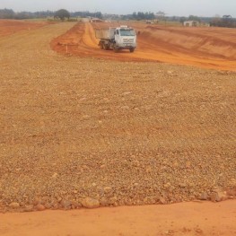 Terraplenagem, drenagem pluvial, cercamento e cascalhamento de toda obra.